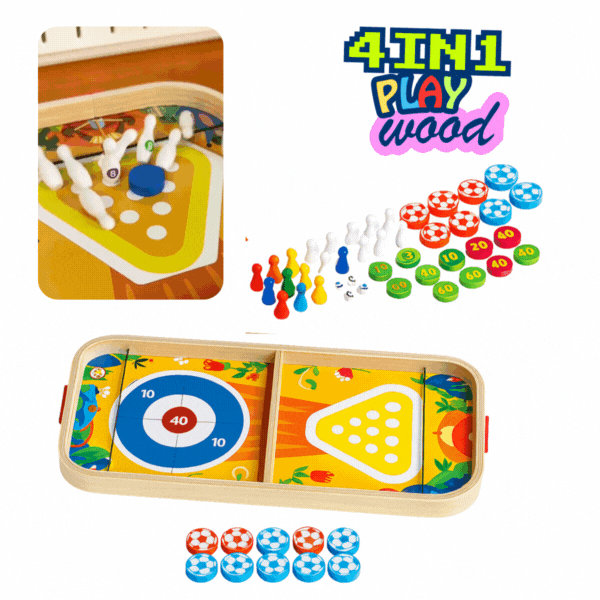 Двустранна дървена игрална дъска 4в1 PLAYWOOD
